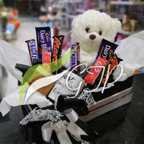 For my best daughter box. This beautiful design box with 8 chocolate bars, Scented Candle, Personalized Message Mug with 10″ Teddy Bear.